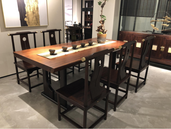 2019年3月,深圳國際家具展覽會,攜【上丞】系列榮耀亮相,引進(jìn)新的材質(zhì)-黑酸枝,在眾多實木新中式品牌中脫穎而出。