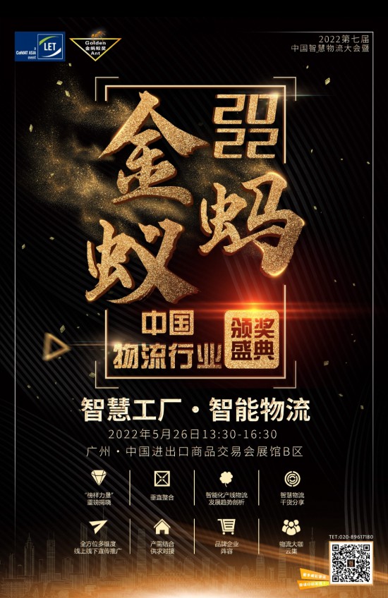 2022年5月26日,來自中國物流行業(yè)、制造業(yè)、流通業(yè)、電商業(yè)等權威機構、商協(xié)會的資深專家、龍頭名企、精英大咖、企業(yè)高管、業(yè)內領袖、知名媒體將濟濟一堂,共同見證物流界年度盛典--第七屆中國物流行業(yè)“金螞蟻獎”的榮耀誕生!