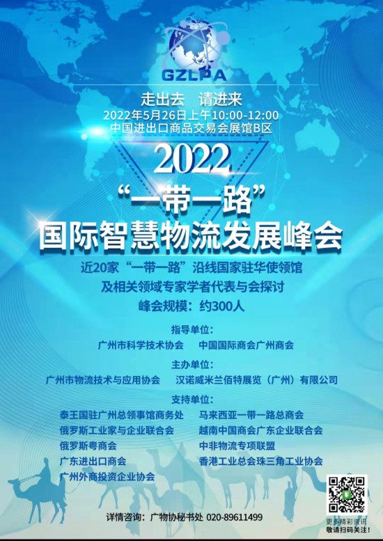 在成功舉辦兩屆峰會(huì)的基礎(chǔ)上,我協(xié)會(huì)將繼續(xù)攜手深入與20家以上“一帶一路”沿線國(guó)家駐穗總領(lǐng)事館和駐華使領(lǐng)館及各大商協(xié)會(huì)加強(qiáng)合作,定于2022年5月26日在中國(guó)進(jìn)出口商品交易會(huì)B區(qū)隆重舉辦2022第三屆“一帶一路”國(guó)際智慧物流發(fā)展峰會(huì)。本次峰會(huì)規(guī)模約300人,誠(chéng)邀“一帶一路”沿線駐穗總領(lǐng)事館和駐華使領(lǐng)館以及對(duì)“一帶一路”有興趣的企業(yè)代表出席本屆峰會(huì),并邀請(qǐng)“一帶一路”沿線國(guó)家相關(guān)企業(yè)物流倉(cāng)儲(chǔ)負(fù)責(zé)人及代表共同參與,推動(dòng)“一帶一路”物流技術(shù)與應(yīng)用的發(fā)展。