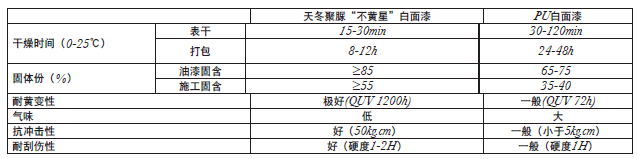 天冬聚脲屬于脂肪族涂料,原料純度達(dá)100%,不帶發(fā)色官能團(tuán),而普通聚酯漆純度通常只有50%且含發(fā)色成分。并且,其在硬度、韌度、飽和度等方面都有出色的表現(xiàn),并且其VOC排放盡管高于水性漆,但卻要遠(yuǎn)遠(yuǎn)低于傳統(tǒng)的油性漆。并且在涂裝過(guò)程中,節(jié)省時(shí)間,飛揚(yáng)同時(shí)還可以為客戶提供針對(duì)天冬聚脲涂料的全自動(dòng)機(jī)械噴涂設(shè)備,更好的節(jié)省人工成本,提高涂裝效率。天冬聚脲“不黃星”白面漆與傳統(tǒng)聚氨酯涂料性能對(duì)比(見(jiàn)下表)