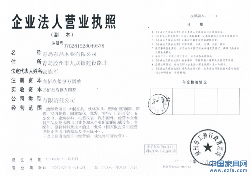 | 發(fā)證機(jī)構(gòu): | 膠州市工商行政管理局 | 發(fā)證時間 : | 2006-11-07 |