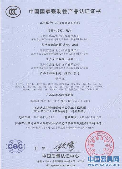證書介紹 國(guó)家強(qiáng)制3C認(rèn)證,梵尼詩,您信的過的品牌! 證書圖片 |