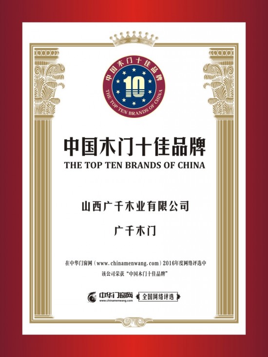 榮譽(yù)資質(zhì) 中國木門十佳品牌