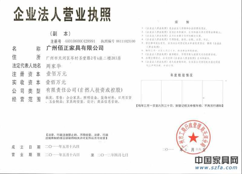 廣州佰正家具有限公司營業(yè)執(zhí)照副本