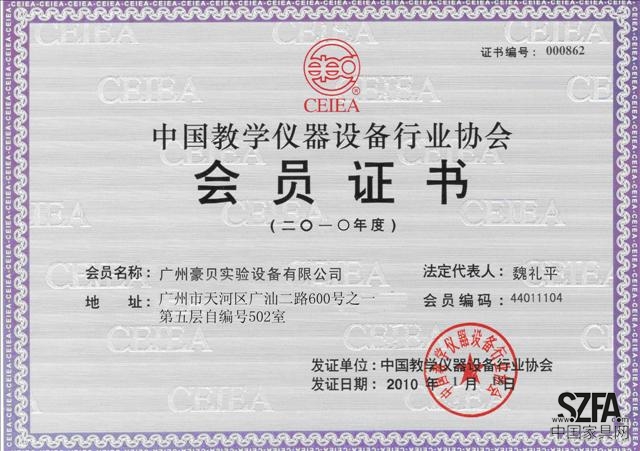 榮譽(yù)資質(zhì) 中國教學(xué)儀器設(shè)備行業(yè)協(xié)會(huì)會(huì)員證書