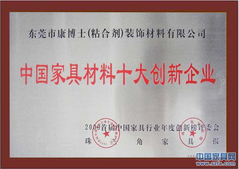 榮譽(yù)資質(zhì) 中國(guó)家具材料十大創(chuàng)新企業(yè)