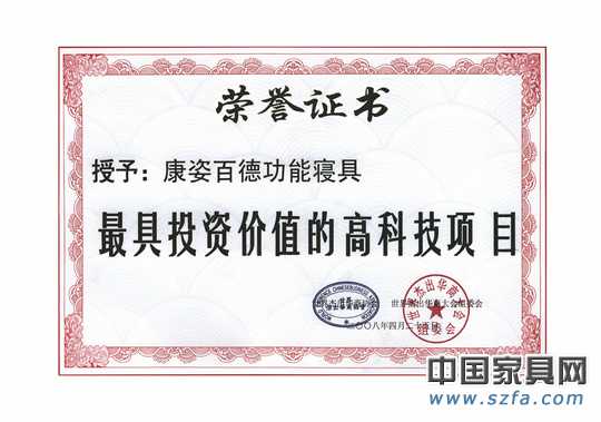 首頁 > 榮譽(yù)資質(zhì) > 康姿百德榮譽(yù)證書