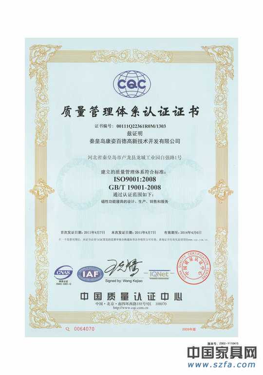 | 發(fā)證機(jī)構(gòu): | 康姿百德 | 發(fā)證時(shí)間 : | 2008-05-01 |