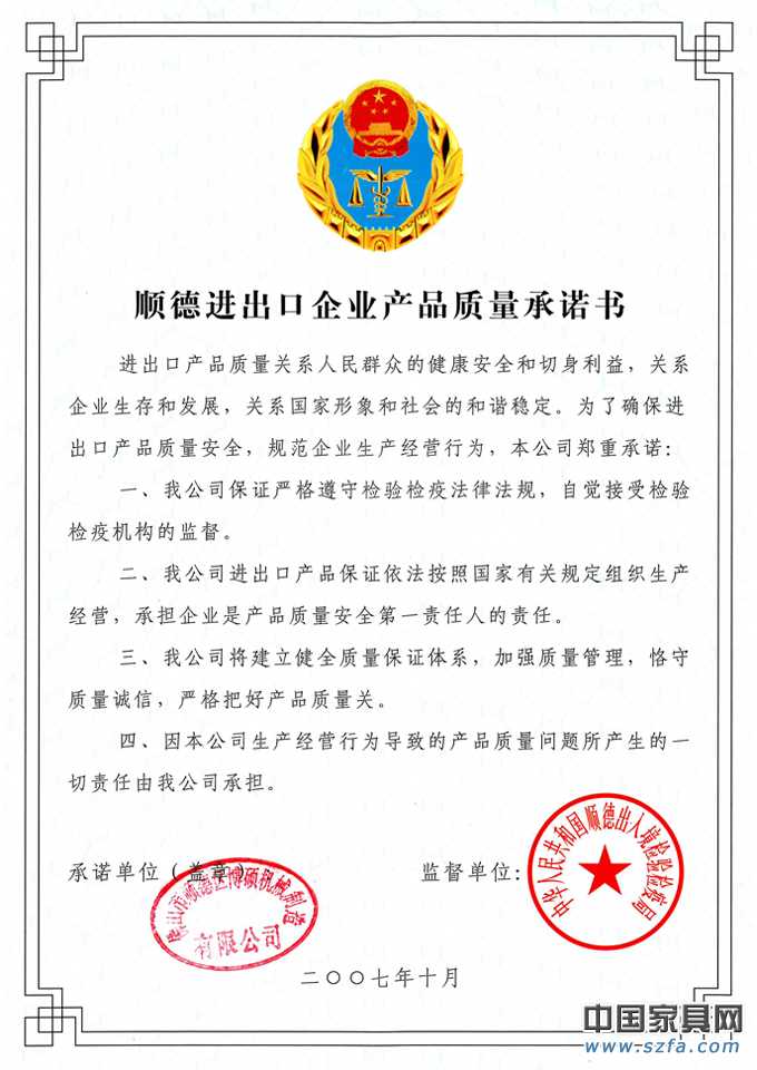 榮譽(yù)資質(zhì) 進(jìn)出口企業(yè)產(chǎn)品質(zhì)量承諾書(shū)