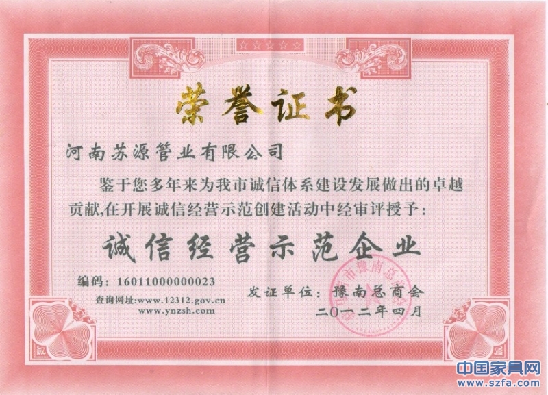 證書介紹 誠(chéng)信經(jīng)營(yíng)示范單位 證書圖片 |
