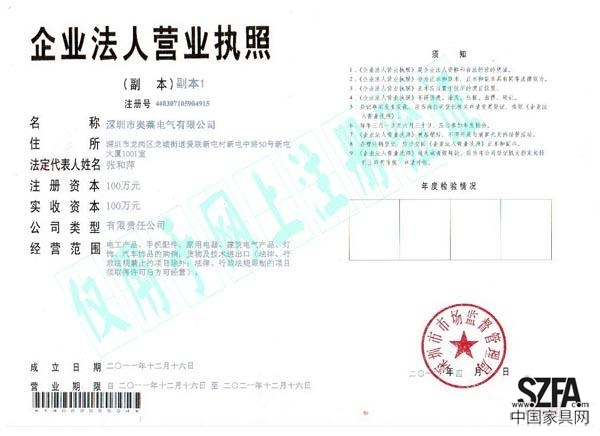 發(fā)證機構(gòu):   深圳市市場監(jiān)督管理局 發(fā)證時間 :   2011-12-16