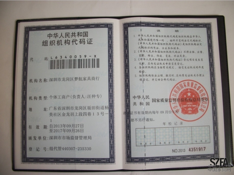 | 發(fā)證機(jī)構(gòu): | 深圳市市場(chǎng)監(jiān)督管理局龍崗分局 | 發(fā)證時(shí)間 : | 2013-09-27 |