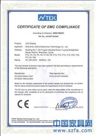 榮譽(yù)資質(zhì) 中祥L(zhǎng)ED屏CE EMC