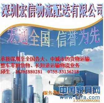 深圳宏信物流有限公司{深圳宏信物流13392880281}是一家專業(yè)從事國內(nèi)普通貨物運輸,貨物倉儲,貨物配送及貨物加工的服務性物流企業(yè)。我公司擁有高欄車,平板車,半掛拖車,半封閉車,全封閉冷藏車,廂式貨車,商品車專用運輸車,承接深圳至全國各大、中城市的貨物運輸, 整車零擔貨物長短途運輸,小轎車托運,深圳家具家俬托運,行李包裹托運,托運小汽車,鐵路快運,大小型設(shè)備托運,深圳長途搬家,電器托運、轎車托運等物流運輸業(yè)務,經(jīng)多年努力發(fā)展,公司實現(xiàn)物資流動最全、最快、最經(jīng)濟、最安全的途徑,使企業(yè)的運輸綜合實力得到了極大的加強和完善,力求全方位服務,由中國人民保險公司做承保更為您解除后顧之憂。      深圳宏信物流有限公司{深圳宏信物流13392880281}是一家集倉儲、配載、大件運輸、長途運輸、搬家搬場、危險品運輸、分撥等業(yè)務為一體的專業(yè)、綜合型物流企業(yè),擁有2-30噸車源30余臺,大件車型40-300噸20余臺,可調(diào)度車輛近200余臺,并配有超過1000平方米的標準大型倉庫為客戶倉儲。目前,宏信物流{深圳宏信物流13392880281}在全國擁有27個一級城市配送中心,形成了以深圳為中心、輻射全國八大區(qū)域,深圳-北京、深圳-天津、深圳-南昌、深圳-深圳、深圳-石家莊、深圳-南京、深圳-上海、深圳-鄭州、深圳-包頭、深圳-成都、深圳-長沙、深圳-南寧、深圳-杭州,網(wǎng)點覆蓋全國的高效的物流網(wǎng)絡體系,保證貨物查詢、跟蹤、簽收回單即時。可以為客戶提供全方位的專業(yè)供應鏈服務。 秉承“專注需求,敏捷服務”的服務理念和“規(guī)范合法、誠信合作、公平競爭、平等發(fā)展”的經(jīng)營思想,深圳宏信物流人將充分利用和發(fā)揮自身優(yōu)勢,強化服務功能,提升服務質(zhì)量,力樹服務品牌,不斷鞏固和加強已有的國際型運作平臺,爭做中國最領(lǐng)先的專業(yè)供應鏈服務商。為了不斷規(guī)范、強化、擴大企業(yè)品牌意識,逐步樹立宏信物流品牌在客戶心目中的“安全、優(yōu)質(zhì)、高效”的企業(yè)形象,我們率先在行業(yè)中通過了ISO9001::2000質(zhì)量管理體系。分別為客戶建立了檔案,接受客戶電話來訪、業(yè)務咨詢、跟蹤回訪,接受客戶反饋的意見和建議。引入計算機管理和隨時以超一流的車輛,365天全天候提供超一流的門對門貨物運輸、包裝、倉儲、物流等超值服務。        本公司{深圳宏信物流13392880281}目前著重發(fā)展貨運產(chǎn)業(yè),備有各類大中小型貨車、廂車、門到門的一條龍服務,真正做到了“急用戶之所急,想用戶之所想”,絕對體現(xiàn):“顧客第一、質(zhì)量第一、服務第一、信譽第一”的服務宗旨,注重信息服務,講究運輸時效,內(nèi)部組成局域網(wǎng)絡,實施了內(nèi)部管理和客戶信息查詢自動化。你的滿意和信賴,是我們永遠的追求!          深圳宏信物流{深圳宏信物流13392880281}特色在于大件運輸,包車業(yè)務。為了順應社會的發(fā)展和科技的進步,并與遍布全國的協(xié)作公司共同努力建立全國運輸信息網(wǎng)絡,利用現(xiàn)代化的電腦和網(wǎng)絡工具開展貨物對發(fā)、倉儲、配送業(yè)務,以科學、有序、可控的作業(yè)流程竭誠為廣大用戶提供倉儲及配送,以高效、準確、安全的優(yōu)質(zhì)服務,為發(fā)展現(xiàn)代貨運企業(yè)奠定堅實的基礎(chǔ)。        深圳宏信物流{深圳宏信物流13392880281}始終堅持“以人為本”的指導思想,“讓客戶的客戶滿意”的服務宗旨,“為客戶創(chuàng)造價值”的經(jīng)營理念,“安全、準時、誠信、便捷”的運作標準,樹立了“深圳宏信物流”{深圳宏信物流13392880281}良好的社會形象,取得了公司迅猛的發(fā)展。伴隨時代的腳步,深圳宏信物流永遠是客戶最佳的合作伙伴、最可信賴的朋友!      熱烈期望能結(jié)識更多的合作伙伴,我們宏信人將以飽滿的熱情,超強的服務意識與您進行溝通與合作,相信我們的強強聯(lián)合將使我們的商路越走越遠!希望與您攜手,再創(chuàng)輝煌!       深圳物流,深圳貨運,深圳快運,深圳運輸,深圳大件運輸, 物流公司,貨運公司,深圳物流公司,深圳貨運公司,深圳運輸
