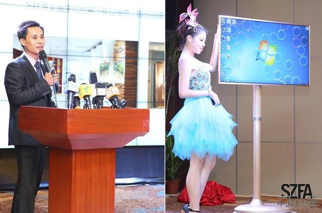 領(lǐng)導(dǎo)嘉賓精彩的講話過后,迎來了本場(chǎng)活動(dòng)的第一個(gè)高潮——保千里商用視像新品發(fā)布環(huán)節(jié)。保千里陳總助、蔣總、計(jì)總、香港IFB總裁王翔生和深圳市會(huì)議展覽業(yè)協(xié)會(huì)副秘書長(zhǎng)李佳共同為新品“移動(dòng)大電腦電視廣告機(jī)”揭開神秘的面紗。新品時(shí)尚、科技的外觀瞬間聚焦全場(chǎng)目光,現(xiàn)場(chǎng)鎂光燈耀眼閃爍。