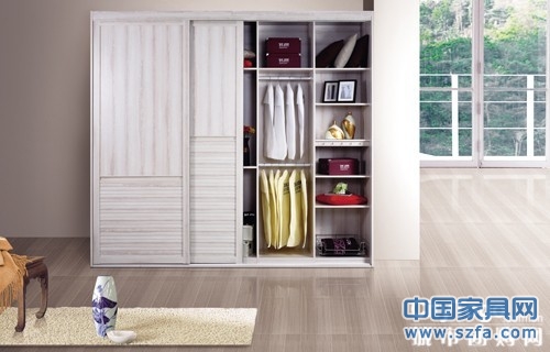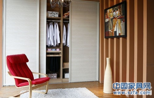 衣柜空間體積大,對于裝修風(fēng)格影響很大,應(yīng)與臥室整體風(fēng)格色調(diào)吻合互應(yīng),應(yīng)提前選擇整體衣柜的柜體顏色、衣柜推拉門的款式、門板顏色與欲選擇的地板、床架、床罩(單)、窗簾等家居品的顏色、樣式的協(xié)調(diào)。