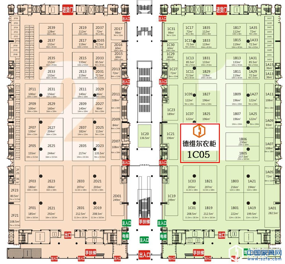 第二步:如果你想直奔德維爾衣柜,請(qǐng)按圖索驥。德維爾衣柜展位在1C05號(hào)。