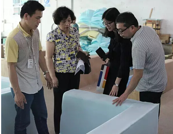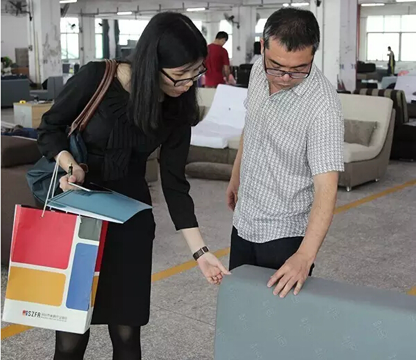 2016年4月27日,深圳市家具行業(yè)協(xié)會副秘書長、檢測中心負責人劉麗娜女士及一行專業(yè)檢測人員前往格調(diào)家私進行第三輪抽檢測評工作。期間專家人員深入生產(chǎn)車間實地考察,對系列產(chǎn)品的原材料和成品進行隨機抽檢,工作結(jié)束后,評審專家組宣布格調(diào)家私第三輪抽檢產(chǎn)品均符合“綠色優(yōu)品”標準。
