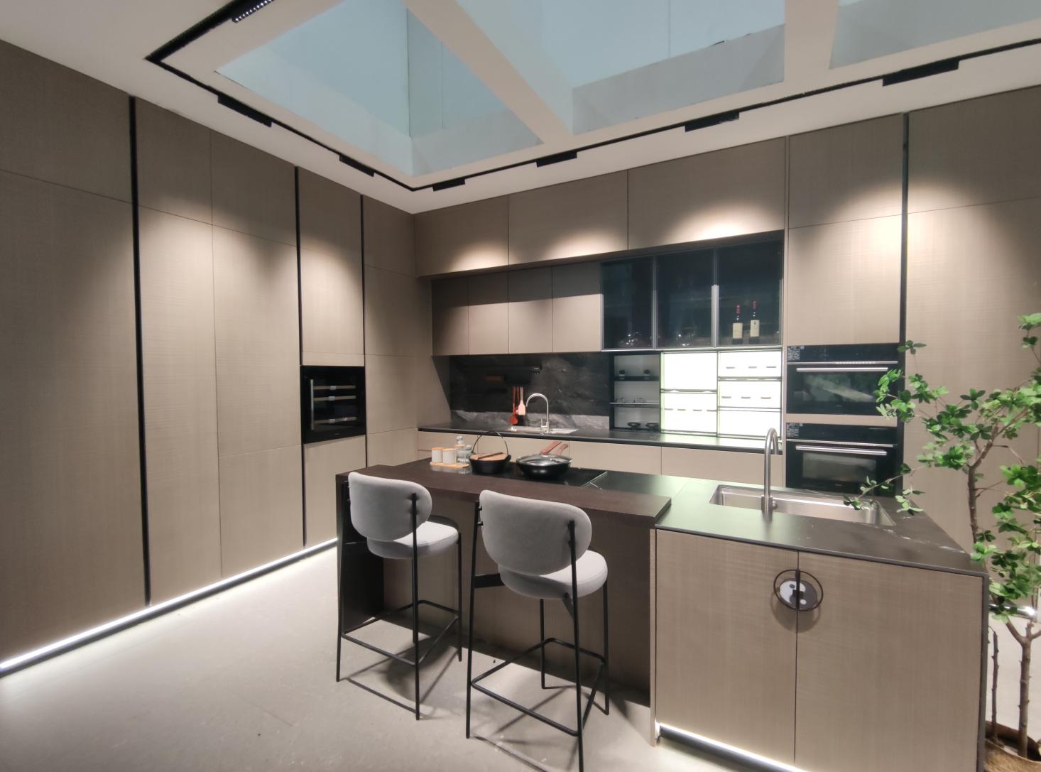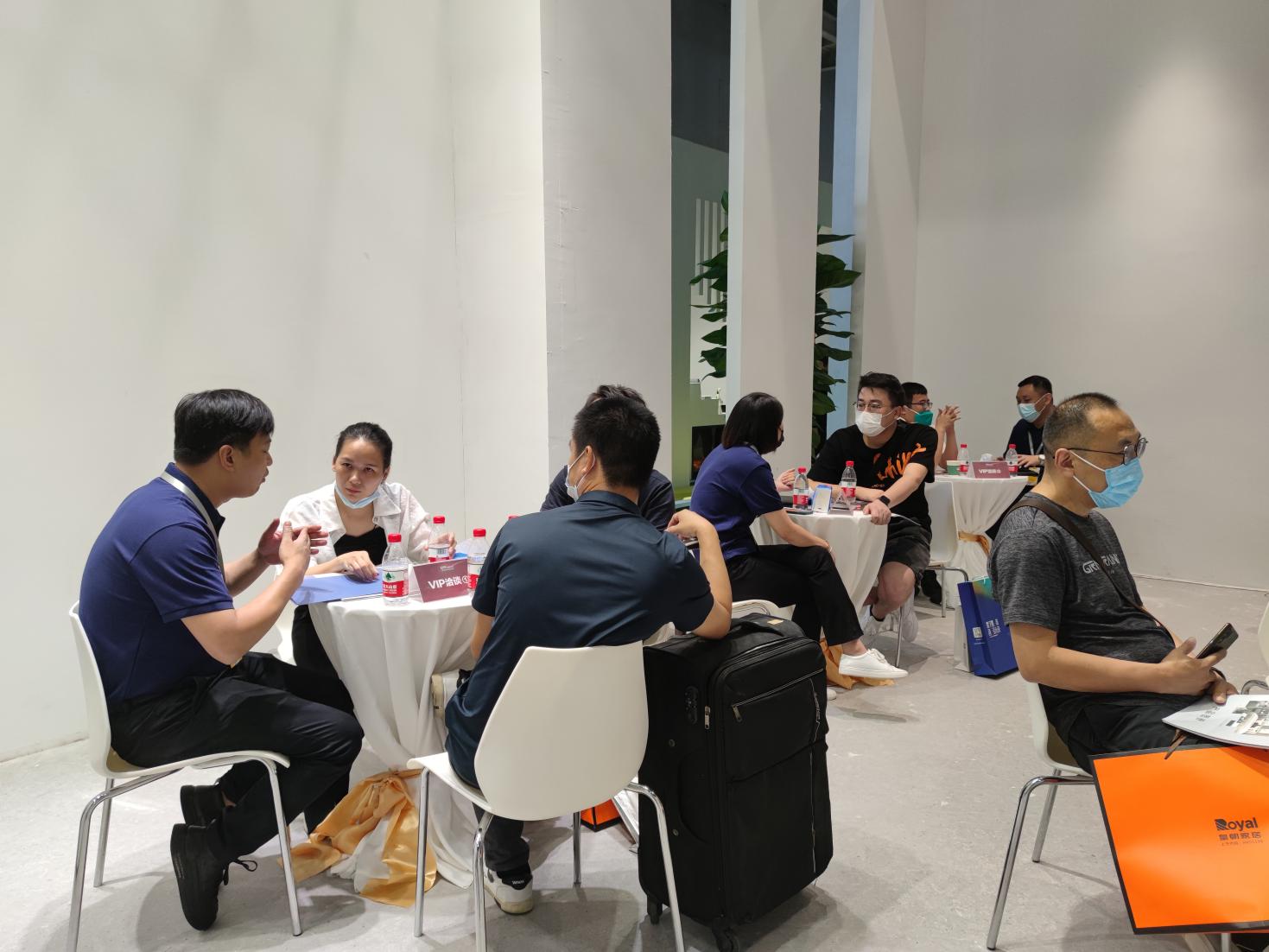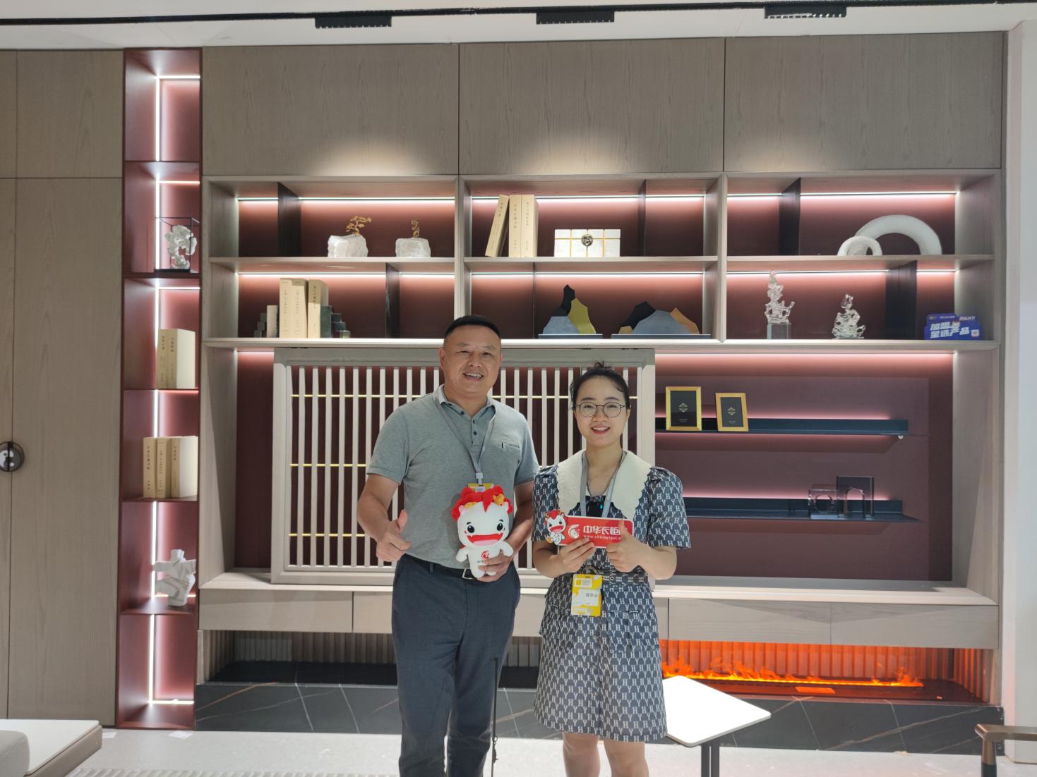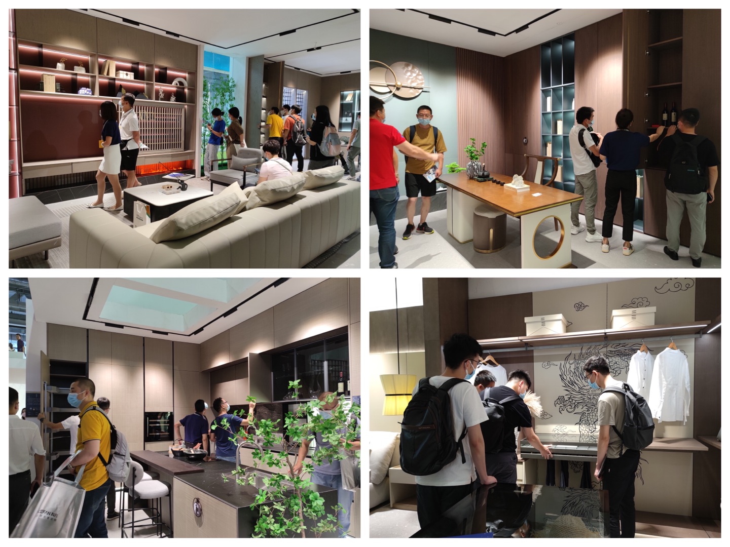 前來觀展咨詢洽談的人絡繹不絕,展廳的布局分別以五行文化系列的櫥柜、客廳、餐廳、茶室、臥室為場景設(shè)計。