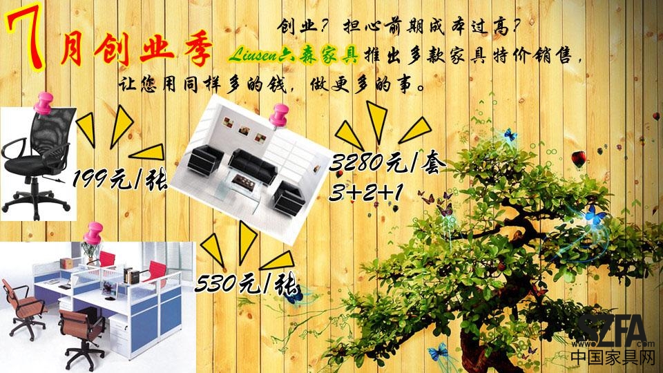 目前,本著為了讓想創(chuàng)業(yè)的人節(jié)省不必要的開支,買到又好又便宜的家具,六森家具推出幾款家具特價(jià)活動: