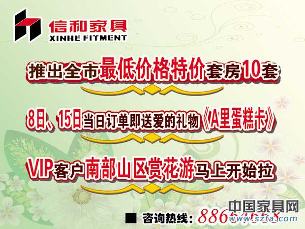 首頁 > 新聞中心 > 信和家具喜迎315—特價優(yōu)惠活動開始啦!