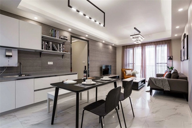 經(jīng)典黑白搭配無(wú)處不在,黑白餐桌椅結(jié)合燈光給與人視覺(jué)上空間的延伸。