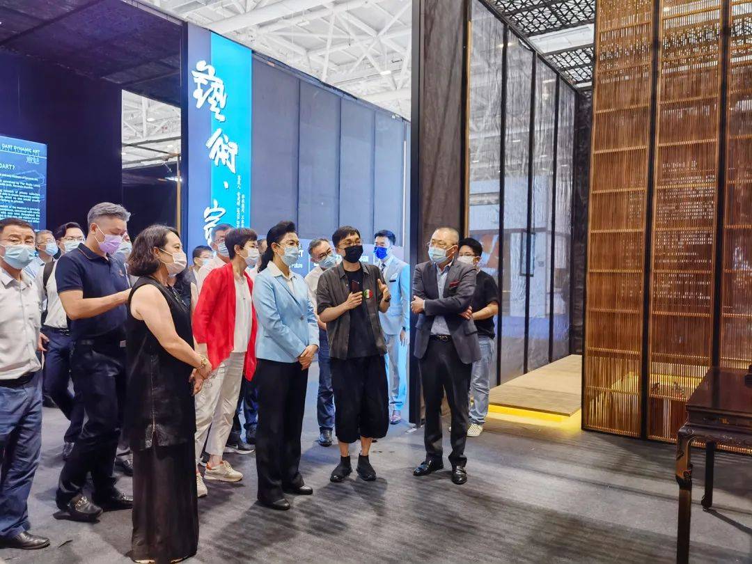 展會期間,深圳市政協(xié)主席林潔,深圳市家協(xié)執(zhí)行會長侯克鵬等領導嘉賓一行蒞臨祥利紅木展位參觀,祥利紅木執(zhí)行總裁王溫漫陪同,并為領導嘉賓們詳細介紹祥利紅木名品家具相關訊息。