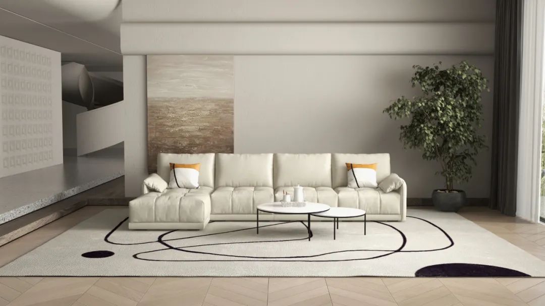 愛馬仕橙為空間注入活力,靠包條紋+拉點(diǎn)組合點(diǎn)綴,精致工藝演繹時(shí)尚新風(fēng)尚,飽滿內(nèi)里填充,得沙發(fā)級(jí)舒適靠感。