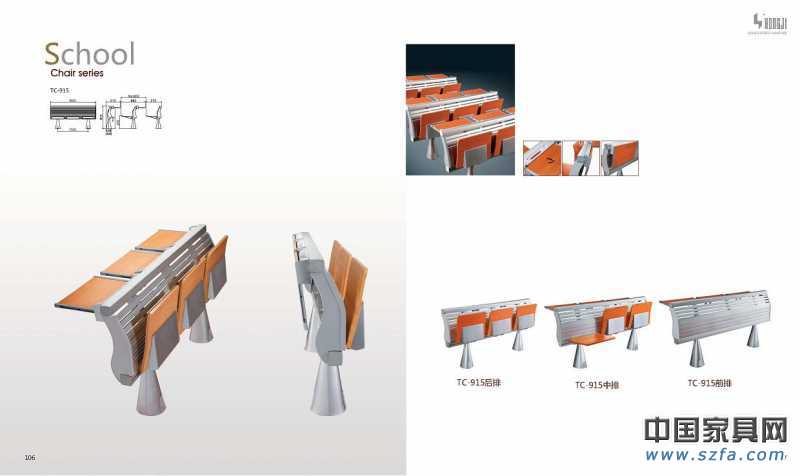 椅座、椅背:采用多層板經(jīng)模具一次熱壓成型,面貼防火板,后經(jīng)PU封邊精制而成。牢固耐用,不退色。