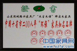 | 全國百家家具企業(yè) | 2008“環(huán)保”家具知名品牌 |