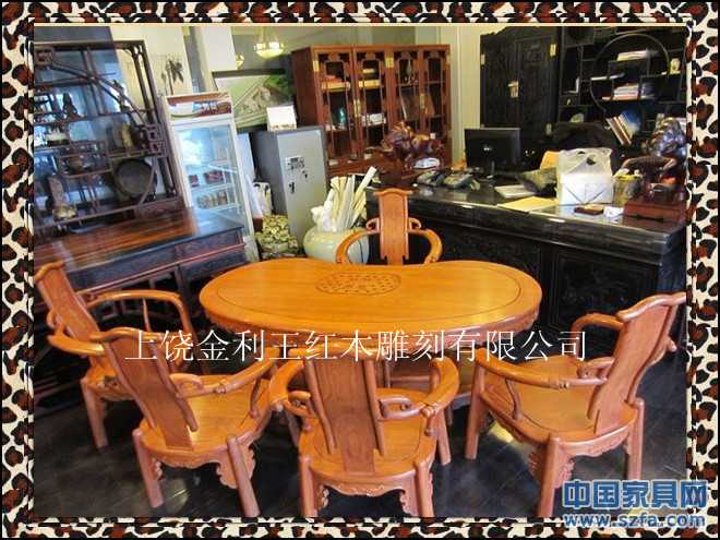 上饒市金利王紅木雕刻有限公司,座落于江西省上饒市經(jīng)濟(jì)開(kāi)發(fā)區(qū)鳳凰園區(qū),是一家專(zhuān)門(mén)從事中高檔紅木家具生產(chǎn)的專(zhuān)業(yè)廠家。本公司視質(zhì)量與信譽(yù)為企業(yè)生存和發(fā)展的根本,潛心為客戶的利益而開(kāi)發(fā)創(chuàng)新各種款式別致的優(yōu)質(zhì)產(chǎn)品。本公司產(chǎn)品選材于東南亞進(jìn)口的黃花梨、紫檀、酸枝、緬甸花梨等珍貴紅木,其特點(diǎn)色澤深沉、質(zhì)地精密、紋理細(xì)膩。公司擁有精湛的技術(shù),產(chǎn)品手工制作,名師打理,設(shè)計(jì)精美,制作精巧,榫卯牢固,舒適耐用。既傳承傳統(tǒng)的雕刻技術(shù),研發(fā)古典藝術(shù)家具,又融入了新的潮流構(gòu)思,其人、物、花、鳥(niǎo)栩栩如生,龍、鳳、獅、虎神采飛揚(yáng),富含東方神韻,各類(lèi)產(chǎn)品深受廣大消費(fèi)者和藝術(shù)愛(ài)好者的親睞。