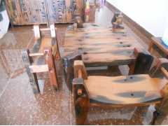 老船木經(jīng)過(guò)海水的上百年浸蝕與洗滌,在烈日與暴風(fēng)雨中航行千萬(wàn)里,歷經(jīng)海水、河水、溪水的打磨與鍛煉形成的。其木質(zhì)堅(jiān)實(shí),高密度,高硬度,顏色深沉,紅黑老黃相加呈現(xiàn)天然韻味。經(jīng)過(guò)打磨的船木擁有光滑的表面不打蠟而具打蠟效果。更加神奇的是老船木能夠防火、防水、防蟲(chóng)、防腐,是當(dāng)今倡導(dǎo)綠色健康、環(huán)保、原生態(tài)永恒的主題,所以老船木是做家具的上好材料。令家具行業(yè)備加推崇,因此老船木家具也十分搶手。