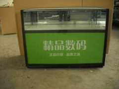 靠墻擺放的手機(jī)展柜背板為不透光板,可選與柜體外觀一樣的顏色、白色或者鏡面。頂部可裝燈箱片,柜內(nèi)燈可選日光燈、射燈,頂部帶燈箱。高度,寬度,長(zhǎng)度可以根據(jù)使用調(diào)整。