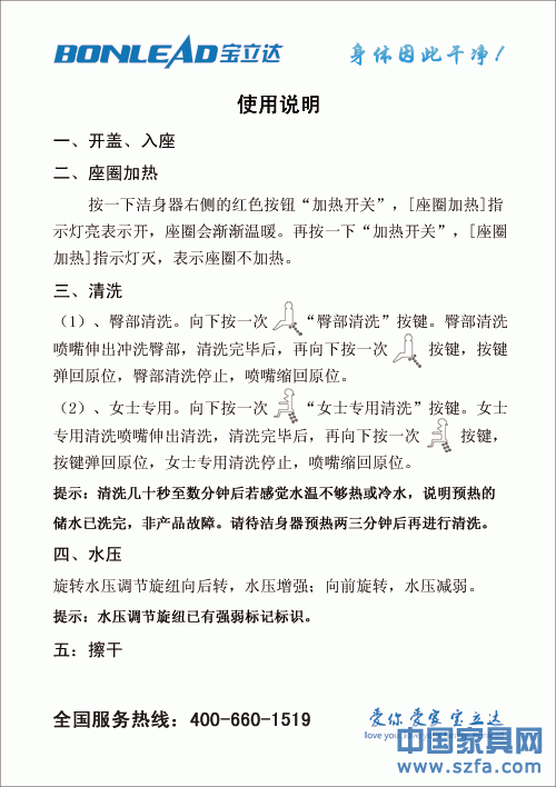 寶立達電子潔身器讓您在每次如廁時都感受到溫水沖洗的快感,而且從此不再有不干凈的內衣、不再有痛苦的便秘、不再有難聞的異味、不再有痔瘡、不再浪費更多手紙!