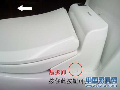 如果要拉出潔身器請如下圖按住潔身器左側的按鈕后向前拉出