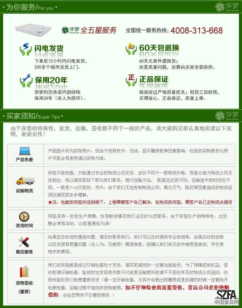 6.硬棕床墊特別經(jīng)過防螨、防蛀、抗菌處理,經(jīng)久耐用、安全、環(huán)保、凈潔,是居家的首選床墊.