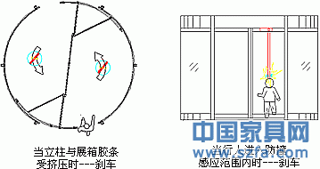 2、防夾感應(yīng)膠條:安裝在展箱立柱與旋轉(zhuǎn)門出入口右側(cè)立柱上,如碰到物體或受到擠壓,門扉會馬上停止轉(zhuǎn)動,防止夾傷行人;