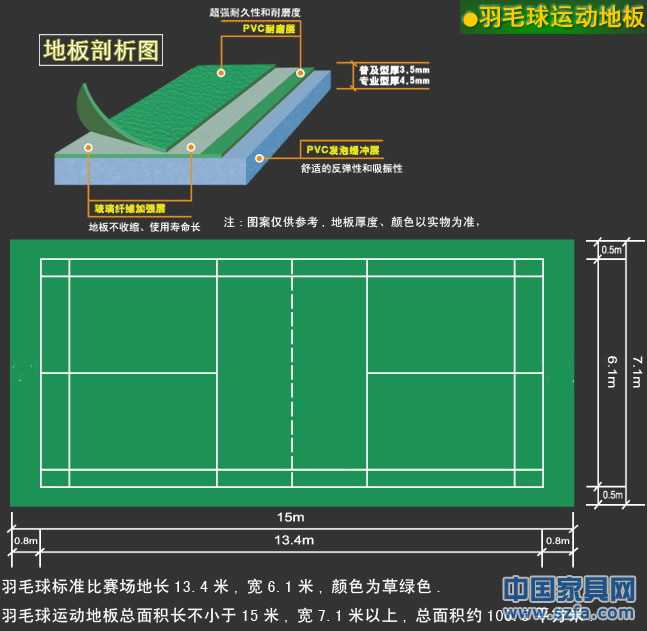 5、球場中央網高1.524米,雙打邊線處網高1.55米。