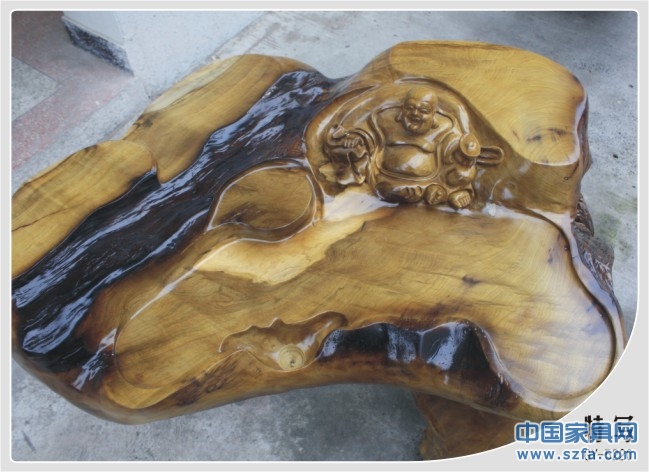 品名:楠木根雕彌勒佛茶幾 產(chǎn)地:福建福州 運(yùn)費(fèi):以實(shí)際為準(zhǔn) 樹(shù)齡:百年 運(yùn)輸方式:物流 包裝方式:海綿毯子 楠木根雕彌勒佛茶幾,采用老撾楠木樹(shù)根為材料,茶幾經(jīng)師傅隨根形精心設(shè)計(jì)而成,茶幾簡(jiǎn)約大氣,造型優(yōu)美,木紋清晰可見(jiàn),極其美觀;茶幾雕刻處更是投入了師傅大量的精力,由工藝大師純手工雕刻而成,桌面雕有彌勒佛圖案,彌勒佛面帶微笑,手托元寶,一幅很有富態(tài)的樣子,人見(jiàn)人愛(ài),具有招財(cái)進(jìn)寶之意。此款茶幾不但選材得當(dāng),造型優(yōu)美,雕工細(xì)膩,更有著令人贊嘆的人類(lèi)工藝與自然美的結(jié)合,實(shí)屬茶幾中的上等。該款茶幾可以擺放在家里、公司會(huì)客廳等場(chǎng)所,再配上幾個(gè)凳子一邊飲茶,一邊商談簡(jiǎn)約大方,悠閑自在。
