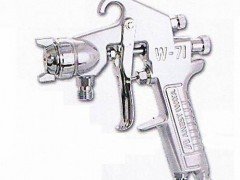 W-71-1S 小型手動噴槍,涂料供給方式吸上式,涂料噴嘴口徑1.0mm,噴涂距離200mm,噴涂空氣壓力0.29(3.0)Mpa{kgf/cm2},空氣使用量75l/min,涂料噴出量95ml/min,噴幅100mm,所用空壓機0.4KW,重量450G.標準涂料容器:PC-1S(1000ml),PC-2(600ml),PC-3(400ml).涂料接頭為G1/4(PF1/4),空氣接頭為G1/4(PF1/4)