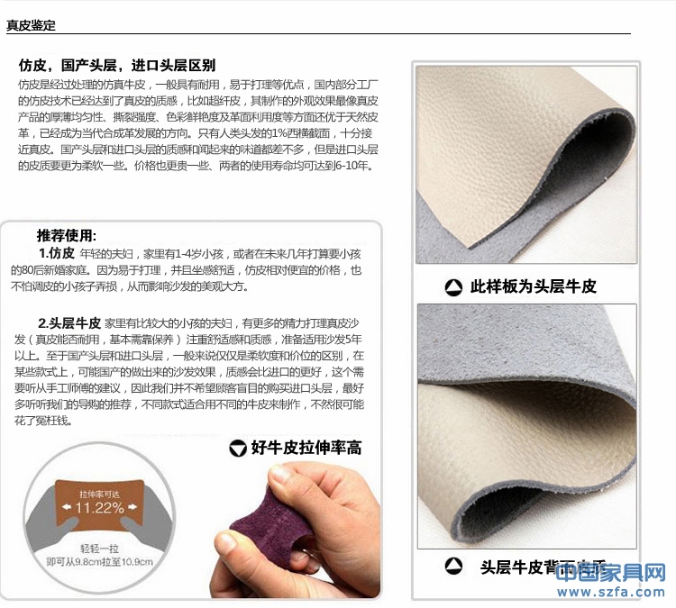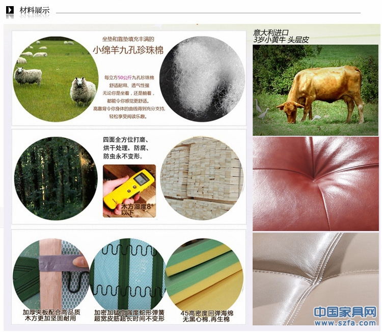 第一層:采用國產水牛皮; 第二層:加粗烘干實木架+夾板