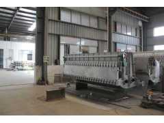 氣墊式流漿箱,適應(yīng)于車速200-550m/min以下紙機(jī),它由布漿、擴(kuò)散、勻漿、上漿主要部分組成。布漿器采用階梯擴(kuò)散形式,與漿料接觸部分不銹鋼304,箱體經(jīng)表面打磨拋光及與漿料接觸面、鏡面拋光后,內(nèi)壁粗糙度0.4um,其他部位1.6~0.8um,與漿接觸部分不存在掛漿現(xiàn)象。階梯擴(kuò)散器光滑,與漿接觸面粗糙度0.4um,勻漿輥采用不銹鋼管制作:勻漿輥的內(nèi)、外壁和孔周均打磨拋光,設(shè)有(過濾清水)噴霧管以消除漿面泡沫和避免內(nèi)壁掛漿,有上唇板粗調(diào)與微調(diào)兩套裝置所組成,粗調(diào)裝置可使上唇板整幅上、下調(diào)節(jié),以達(dá)到所抄造紙定量的開口度;微調(diào)機(jī)構(gòu)、間距使唇板開度沿全幅寬一致。以調(diào)節(jié)局部的橫幅定量差。本裝置帶微調(diào)千分表。流漿箱設(shè)有縱、橫向走臺(tái)板、欄桿、扶梯等。欄桿、扶手、走臺(tái)框架和托架采用型鋼制作,欄桿、扶手外表鍍鋅。縱向走臺(tái)板為鍍鋅柵格板,橫向走臺(tái)板為不銹花紋鋼板。