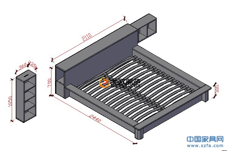 床:1800*2000mm 床頭總寬2110mm高700mm總長2440mm 書柜:360*220* 1050mm |