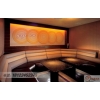 會(huì)客空間的室內(nèi)設(shè)計(jì),在設(shè)計(jì)手法上強(qiáng)調(diào)墻面的處理和地面的裝飾,在木磚裝飾的墻面上,掛有裝飾畫及綠色植物進(jìn)行點(diǎn)綴。沙發(fā)的面料與地毯的色調(diào)和圖案相似,風(fēng)格統(tǒng)一。角部的室內(nèi)燈光照明突出了室內(nèi)功能。