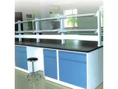試 劑架: 試劑架全部采用冷軋鋼板制作,有可任意調整高度的活動架板(材質為鋼制12mm厚高強度玻璃)必要時可與吊柜同時安裝。