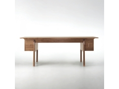 你可以用手撫觸到桌面下方類似雙手打開托舉的弧度。對于擁有它的主人而言,無論是桌面的細(xì)節(jié)處理,抽屜的收納功能,乃至金屬元素的搭配,詮釋一種人文的承載關(guān)系。