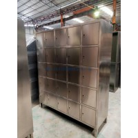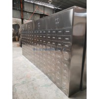 b、 不銹鋼儲物柜隔板加強筋采用滾壓技術(shù)壓成型。c、扣手采用鋁合金材料,環(huán)保、耐磨、觸摸面光滑,邊角無刺尖。連接件、支撐加固輔件耐磨耐壓,硬度滿足承重要求