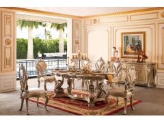 低調(diào)奢華法式新古典實木雕花橢圓餐臺雙面雕餐椅