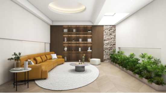 古金色的CBD家居·黑金 | HZ170沙發(fā)做點(diǎn)綴,一抹亮色打破空間的沉悶感,驚艷十足;異型沙發(fā)自帶弧度,隨性而不失意趣,選用白色橢形地毯搭配,空間更顯溫馨靈動(dòng),極簡(jiǎn)生活,不失質(zhì)感。