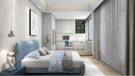 淺白為基調(diào),空間通透爽朗,足以舒緩情緒,給人治愈感。學(xué)習(xí)區(qū)與睡眠區(qū)互為整體又各自獨(dú)立,一目了然的空間動(dòng)線(xiàn),舒展自如,得到生活的本質(zhì)體驗(yàn)。
